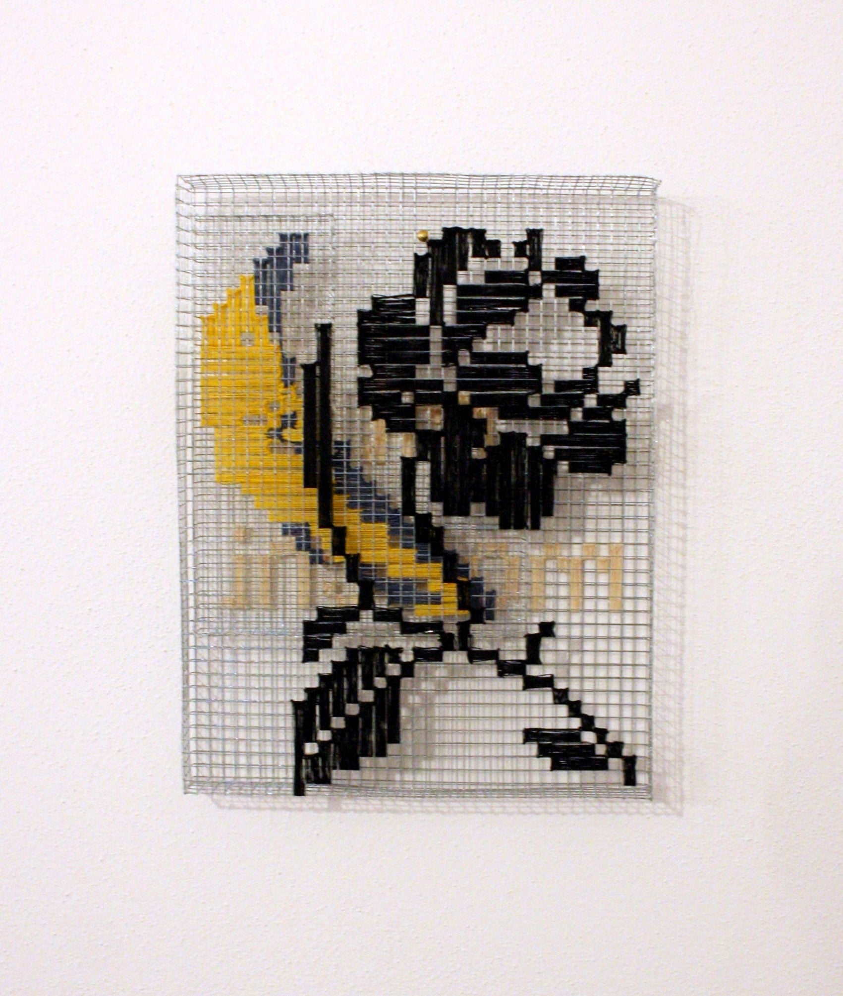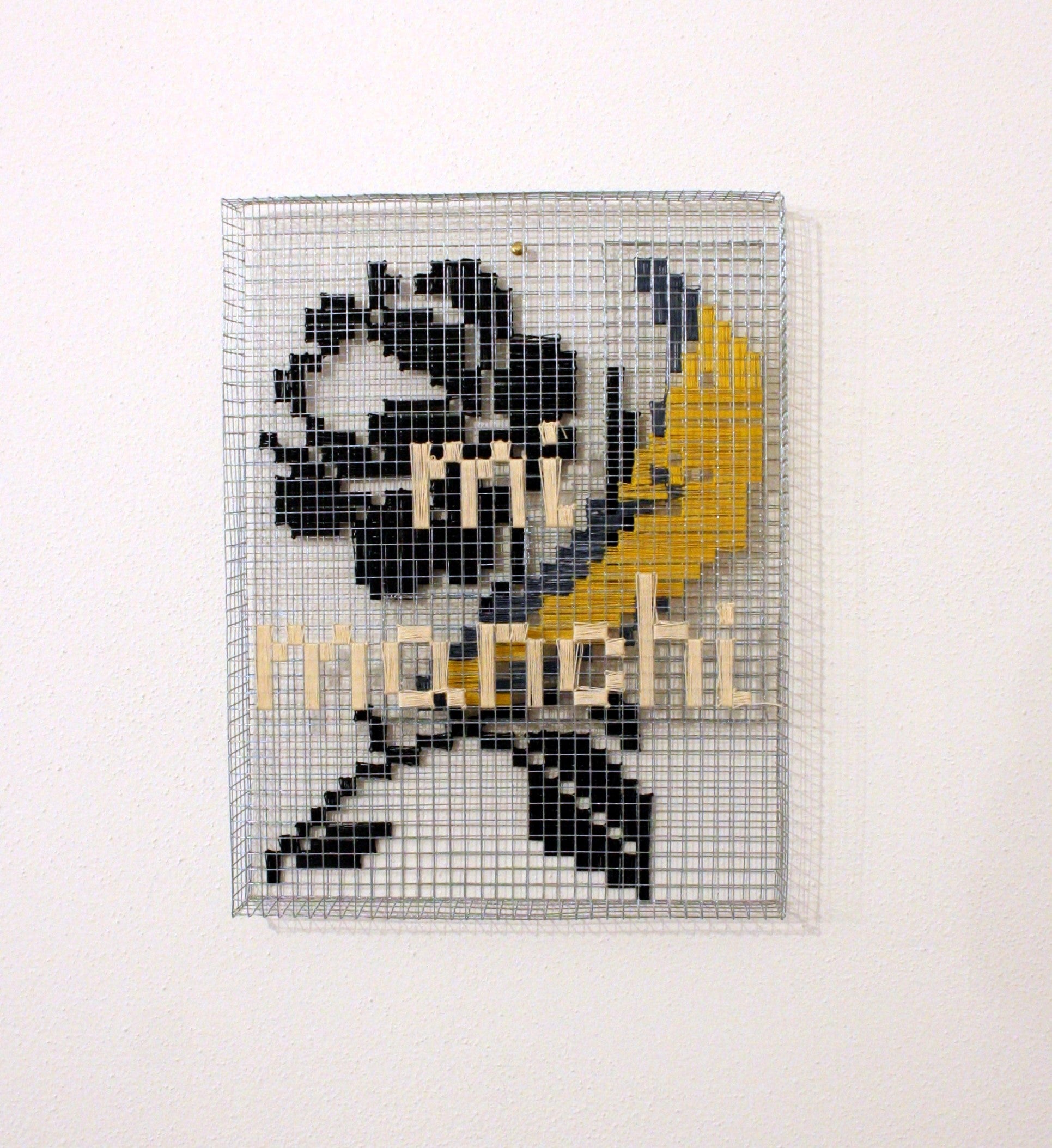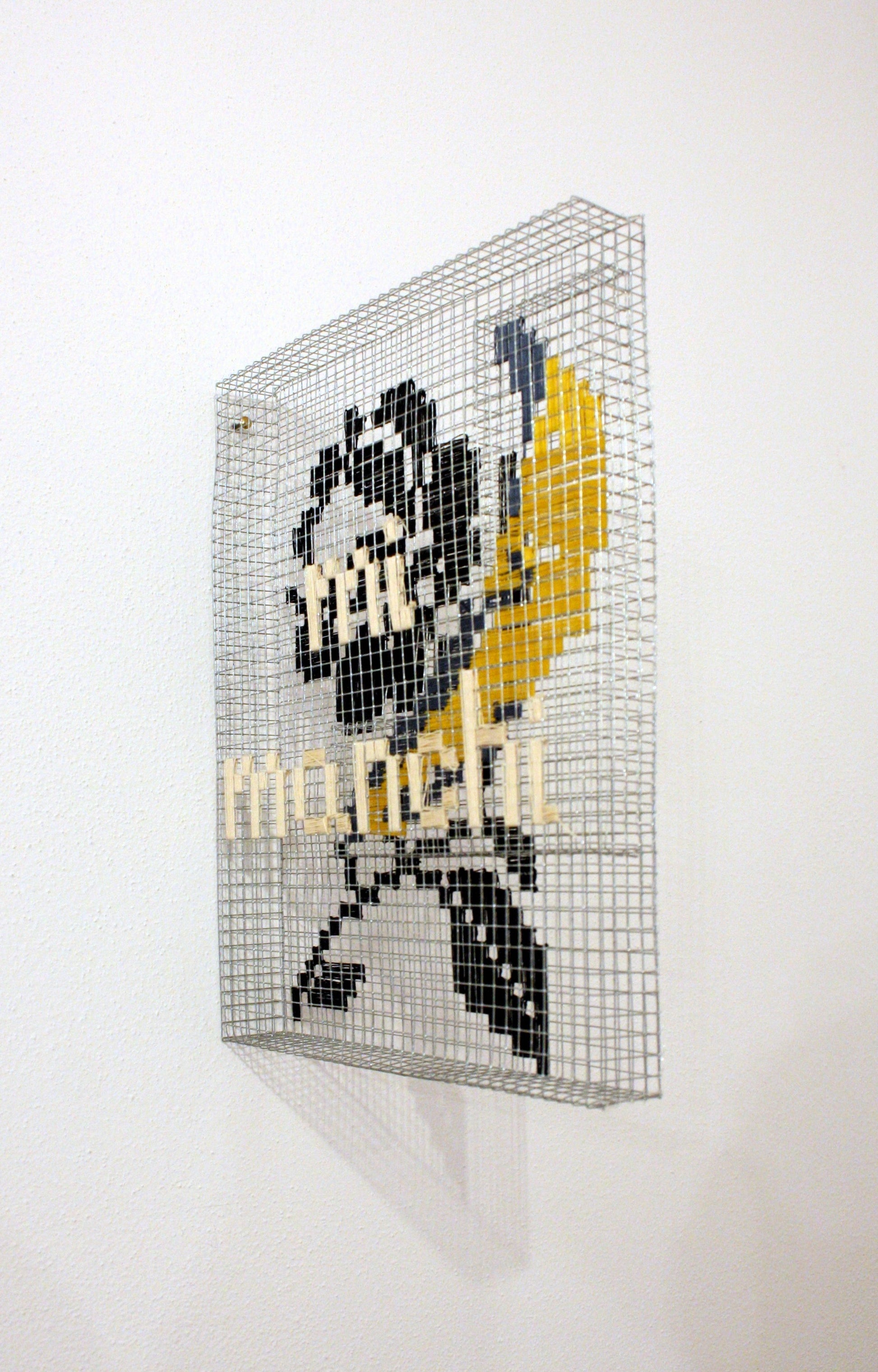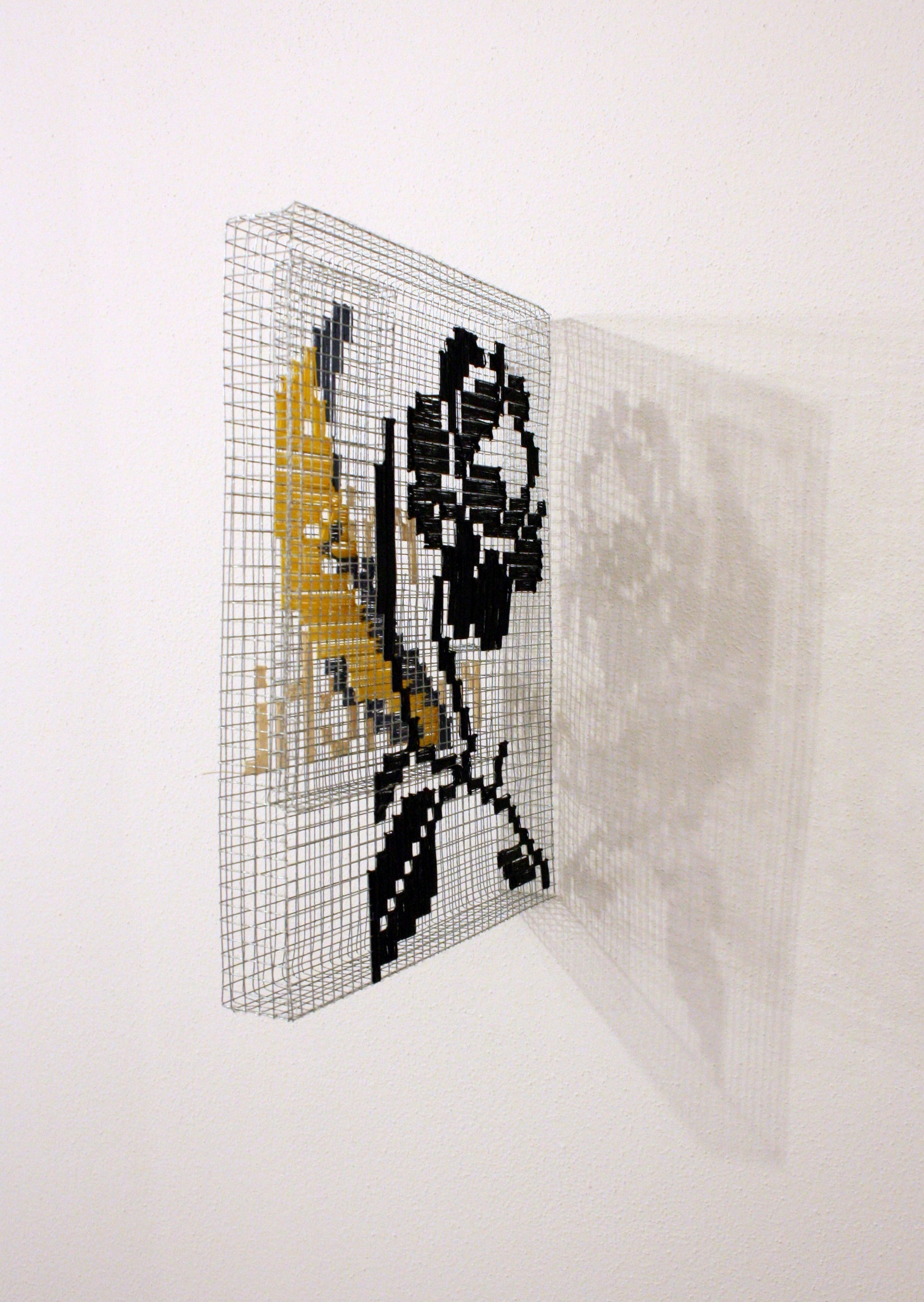 Series of cages for thoughts 29.5 x 22.5 x 3 cm., metal mesh and cotton thread.