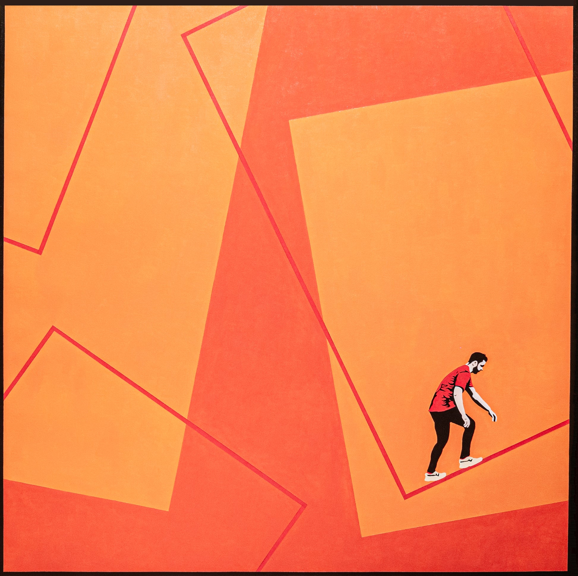 Currently, Miguel Watio has begun a new stage where his characters seem to have come back to life with their original pop style within his landscapes of geometric abstraction.