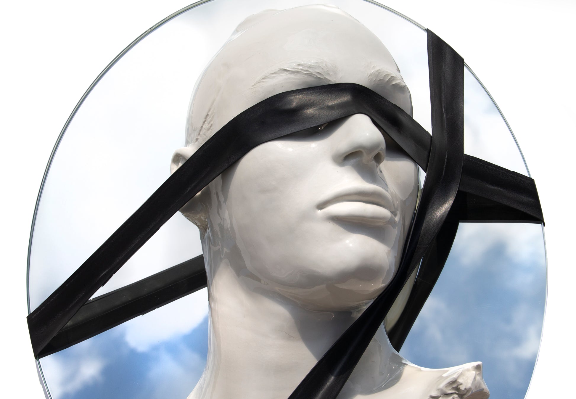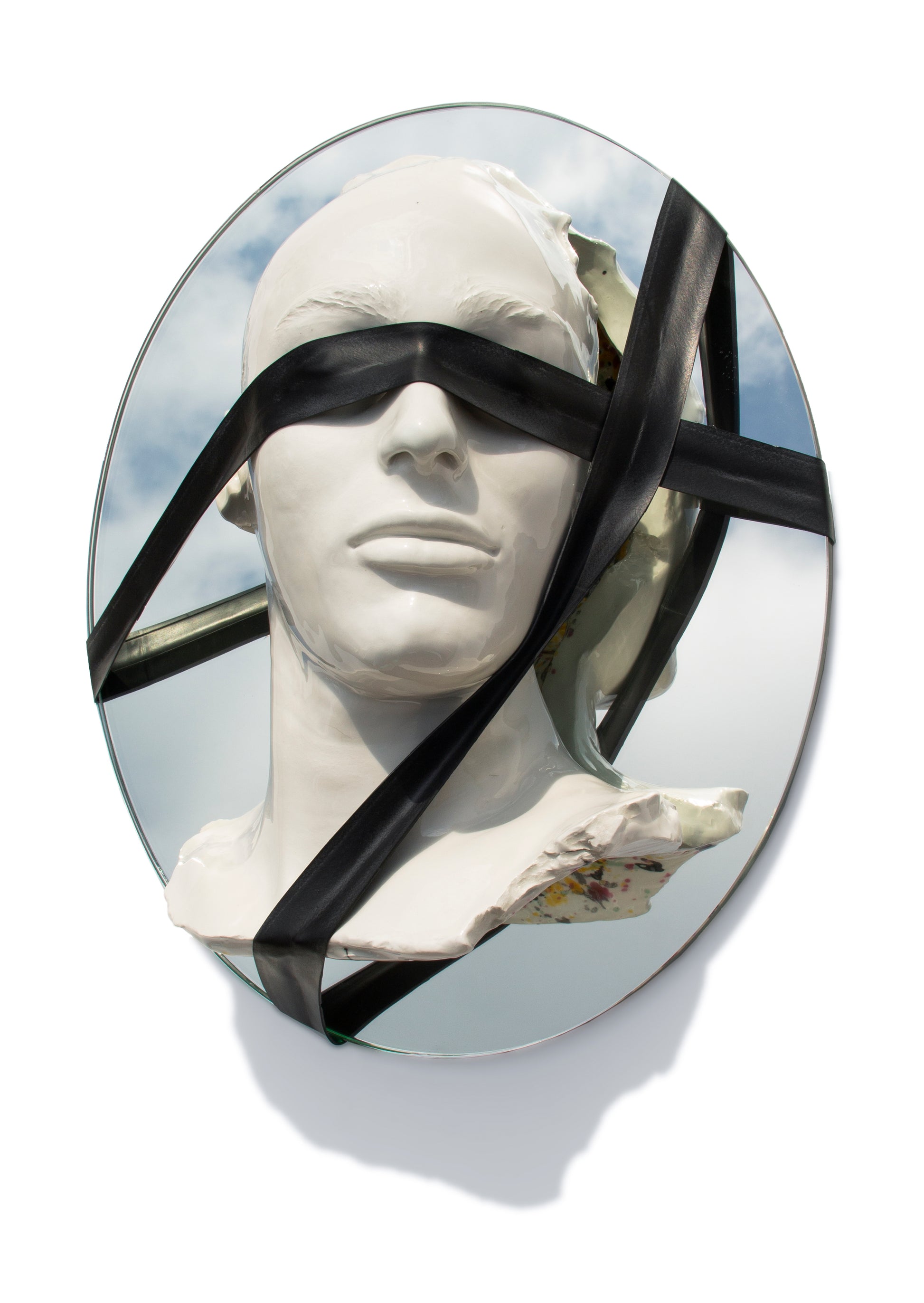 Serie Vaciados, 43 x 37 x 16 cm., cerámica esmaltada, goma y espejo.