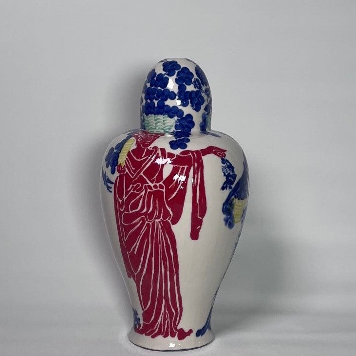Oda al hedonismo, al color vibrante y sinuoso, a la homoerótica de los vasos griegos y a su lúdica gráfica con una escenografía organizada de manera que permiten su lectura girando la pieza y hablando por si misma.