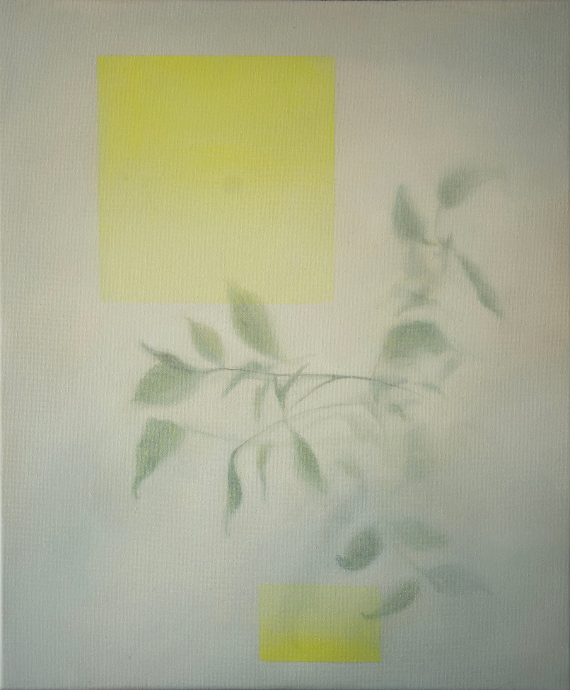 En su nueva línea de trabajo, Diana investiga cómo lo etéreo y lo intangible pueden materializarse sobre la superficie del lienzo. Esta serie profundiza en la percepción detenida del tiempo, donde la vegetación aparece como un eco suspendido en la memoria, difuminado entre transparencias y veladuras.
