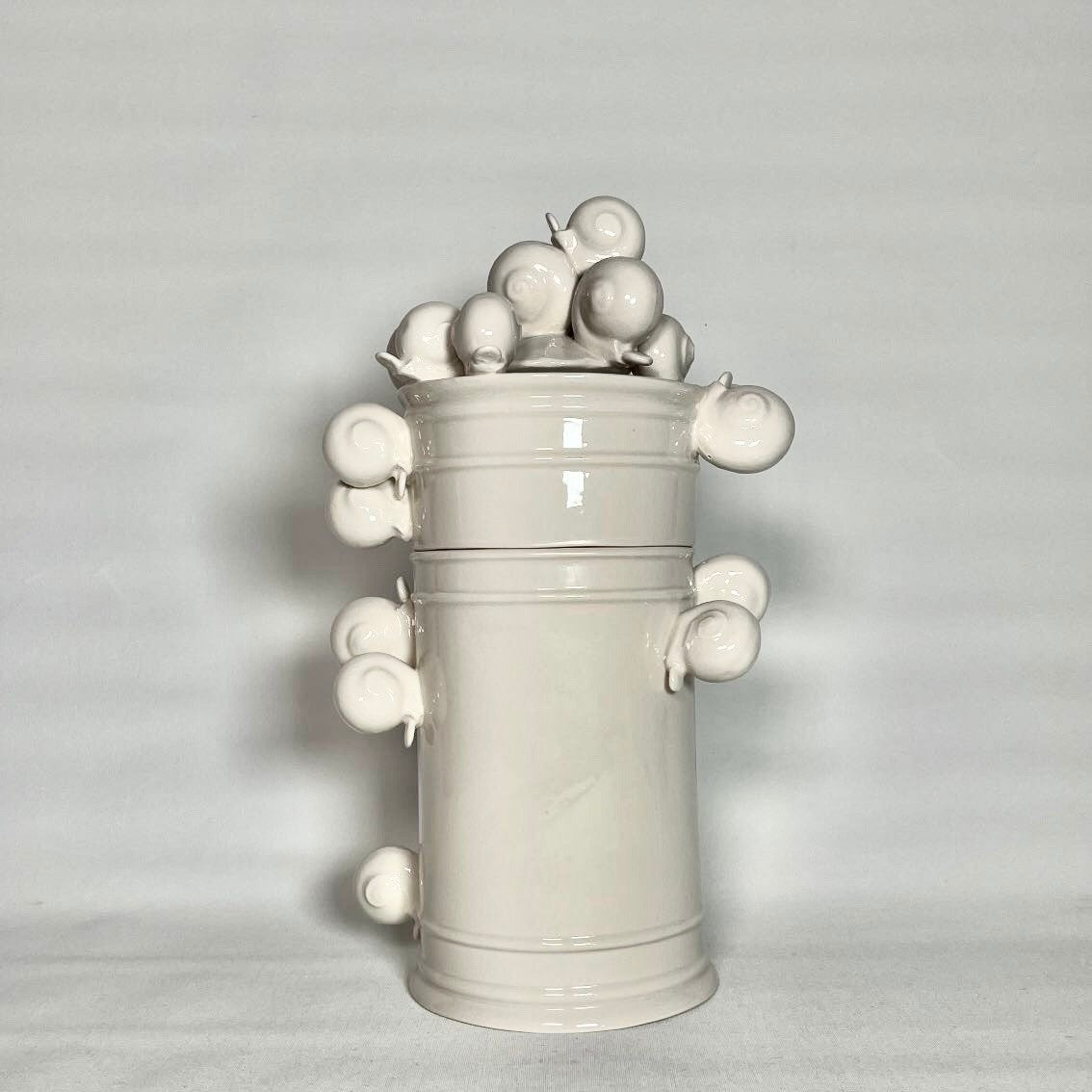 31 x 19 x 19 cm, porcelana fundida com esmalte transparente brilhante.